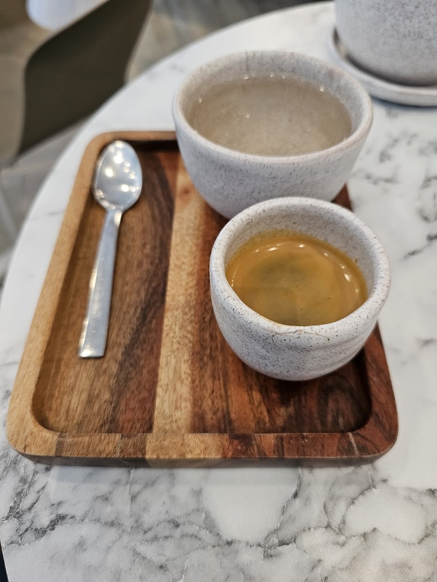 The coffee was delicious, the ambiance very nice, the music was a little loud where we were sat ( near the entrance ). If you like cold coffee, try the espresso tonic, absolutely refreshing. The croissant with eggs were a little too greasy for my taste, but in general acceptable. There was however many many dogs which became an issue when they started barking at each other. Totally recommend it, there are outdoors seating as well for those who like to be in the sun.